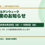 - ゴールデンウィーク休業のお知らせ(4/29〜5/6)