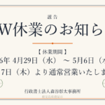 - ゴールデンウィーク休業のお知らせ(2026年4月29日〜5月6日)